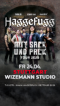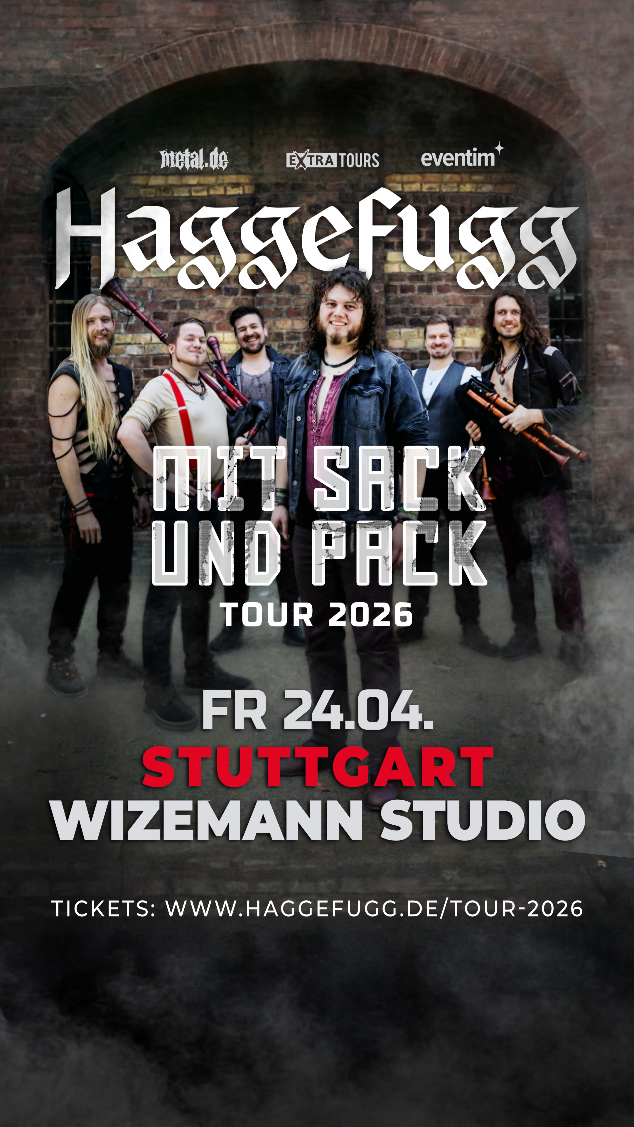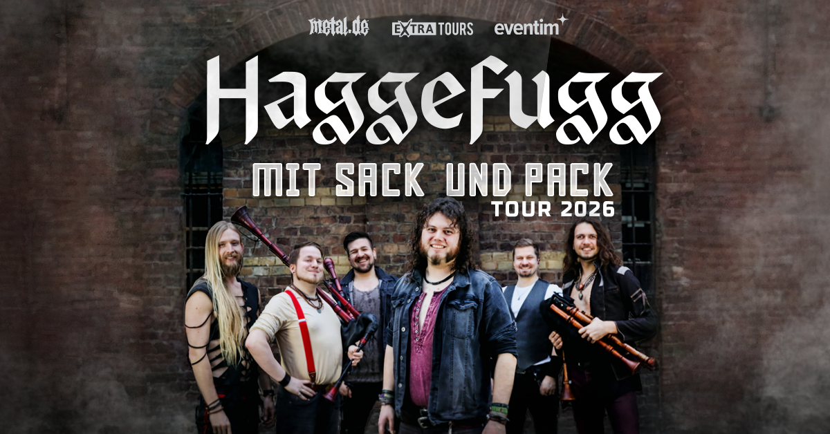 Die sechs Kölner bringen Rock, Dudelsäcke und eine Priese Wahnsinn – auch in deine Stadt! Seit ihren Anfängen 2015 haben Haggefugg mit ihrem energiegeladenen „ehrlichen Mittelalterrock“ schon auf zahlreichen Bühnen die Massen in Ekstase versetzt. Nach Auftritten mit Szenegrößen wie Subway to Sally, Saltatio Mortis und Feuerschwanz sowie Shows auf großen Festivalbühnen wie dem Wacken Open Air, Summerbreeze und Wave-Gotik-Treffen Starten Haggefugg 2026 von ihrer Heimat Köln auf die langersehnte Headliner-Tour.